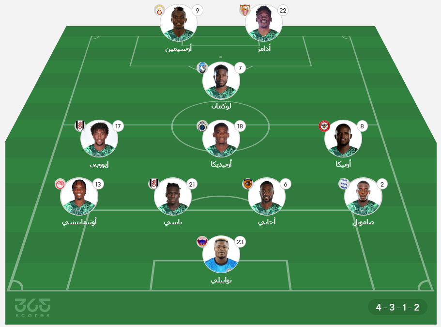 - خط الهجوم: أديمولا لوكمان، فيكتور أوسيمين، أكور آدمز.