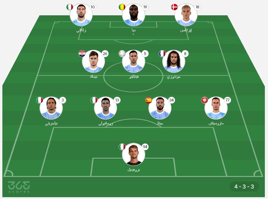 - خط الهجوم: ماتيا زاكاني، بولاي ديا، جوستاف إيزاكسن.