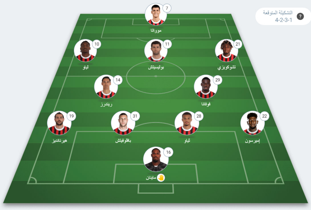 - خط الوسط الهجومي: صامويل تشوكويزي، كريستيان بوليسيتش، رافائيل لياو.