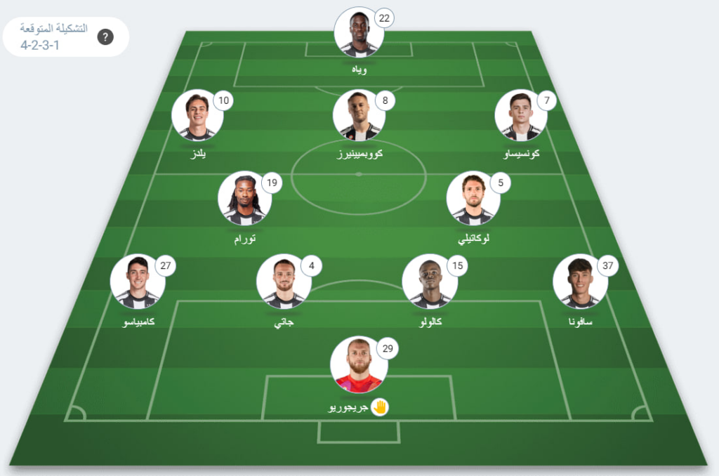 - خط الوسط الهجومي: شيكو كونسيساو، تيون كووبميينيرز، كينان يلدز.