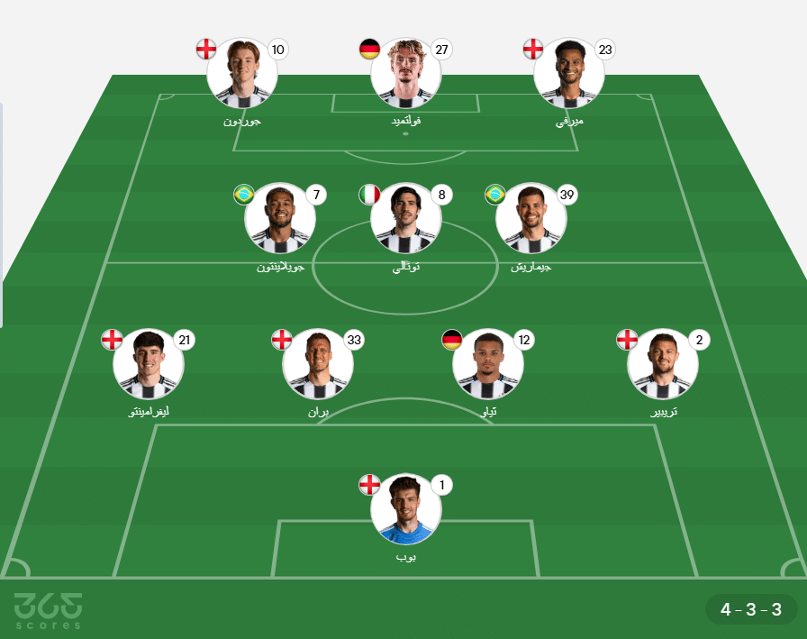 تشكيل نيوكاسل يونايتد ضد أرسنال