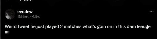 وهاجم أحد المشجعين التغريدة دفاعًا عن محمد عبد المنعم معلقًا: “تغريدة غريبة لقد لعب للتو مباراتين ماذا يحدث في هذا الدوري اللعين”.