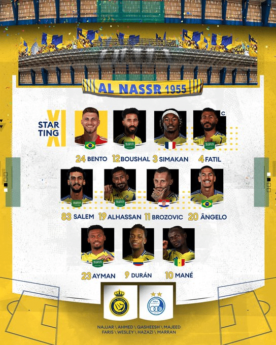 Alineaciones Confirmadas de Al Nassr hoy vs Esteghlal FC Tehran