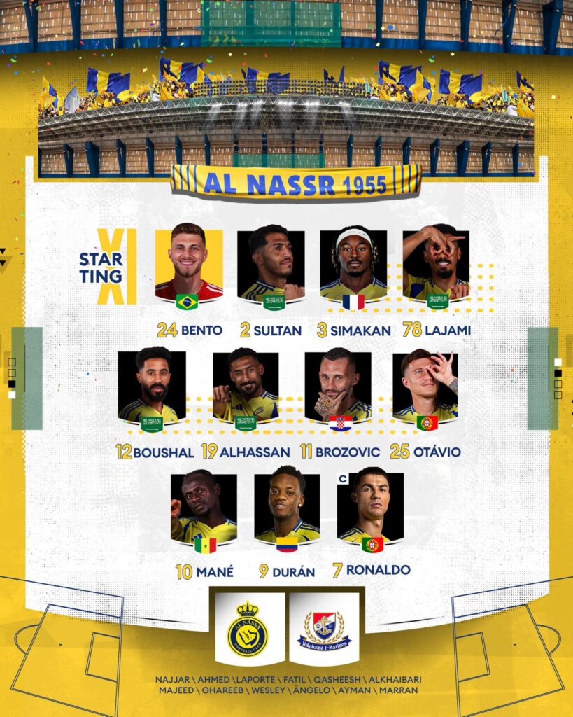 Alineaciones confirmadas de Al Nassr hoy vs Yokohama Marinos