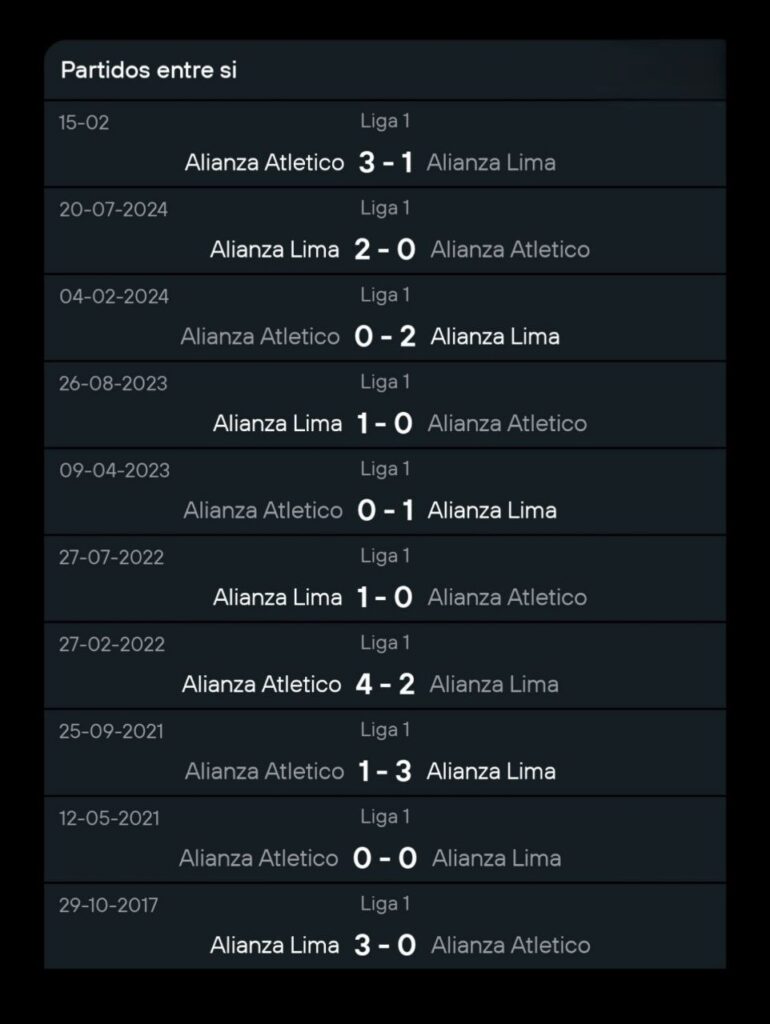 Últimos 10 partidos entre Alianza Lima vs Alianza Atlético