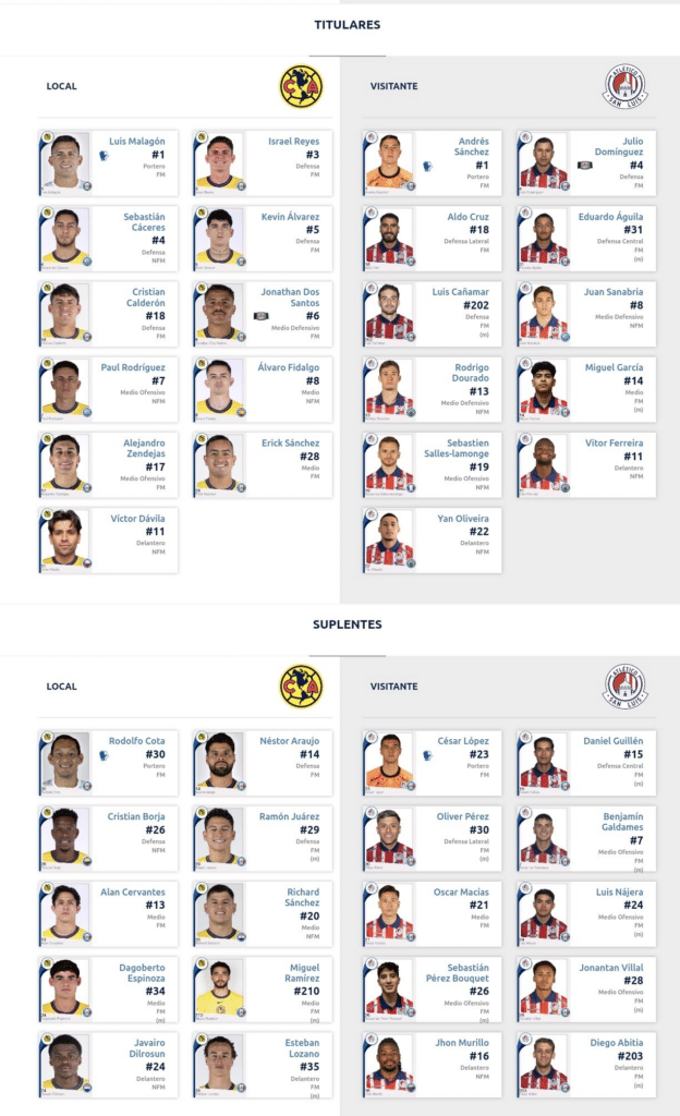 El Club América ha confirmado su alineación titular para enfrentar al Atlético San Luis en un duelo clave de la Liga MX. Recuerda que puedas seguirlo en vivo por 365Scores, con toda la información sobre el juego.