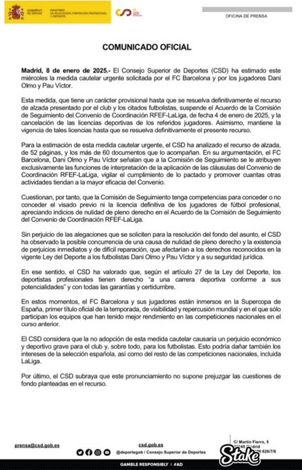 Hoy se confirmó que Dani Olmo y Pau Victor estaban habilitados para jugar: pese a esto, no formarán parte del equipo de Flick y tampoco estarán en el banco de suplentes.