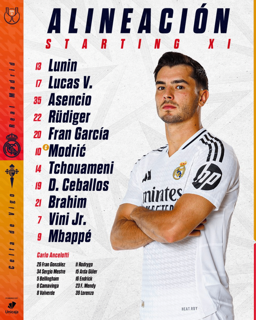 Alineación Confirmada del Real Madrid vs Celta por la Copa del Rey: ¡6 cambios de la final!