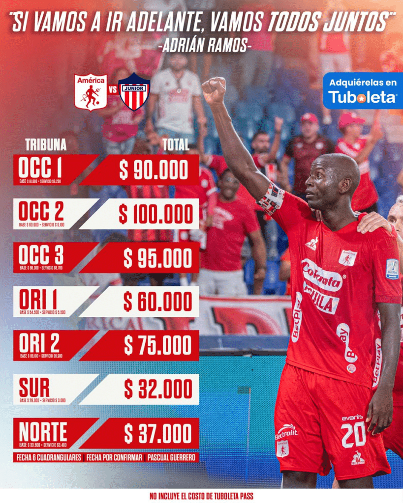 América de Cali vs Junior precios de las boletas y dónde comprarlas