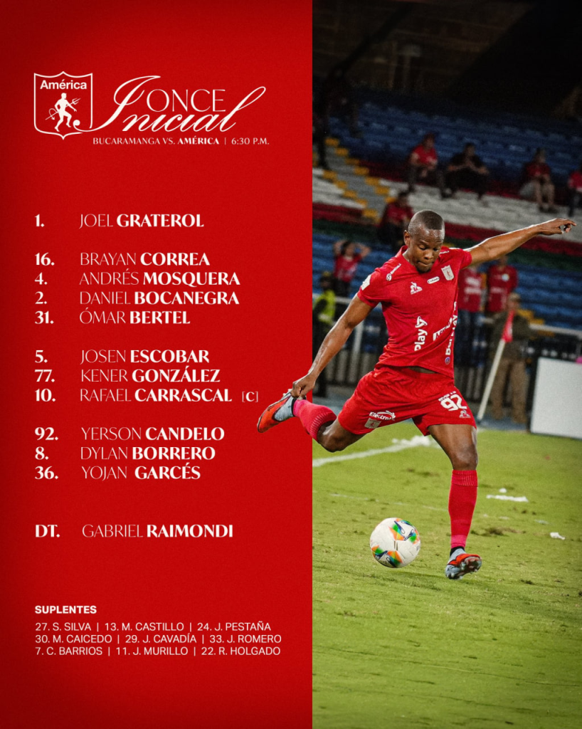 América de Cali hoy: nómina vs Atlético Bucaramanga