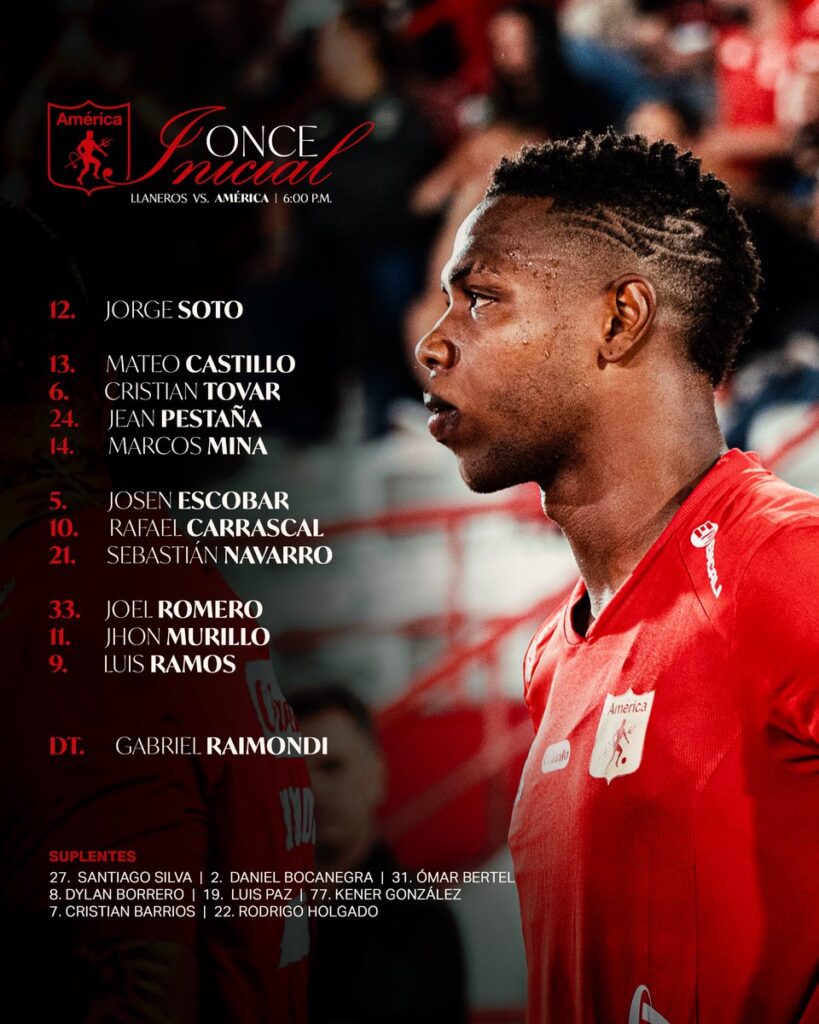 América de Cali hoy visita a Llaneros FC por la fecha 1 del Torneo Finalización de la Liga BetPlay. Con el estreno de Gabriel Raimondi como entrenador, el flamante DT ha definido su once para este choque inicial en el Estadio Bello Horizonte Rey Pelé.