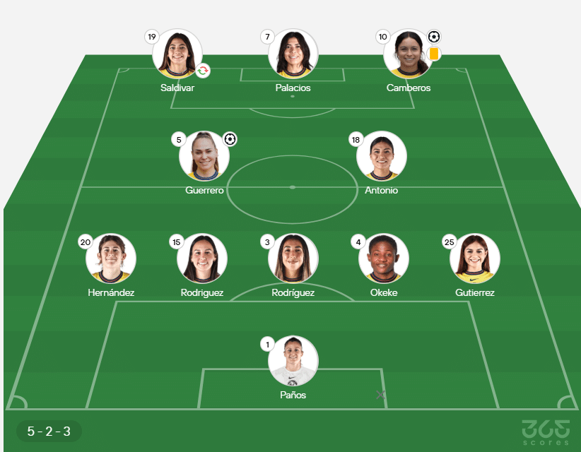 - Defensores: Hernández, Rodríguez, Rodríguez, Okeke, Gutierrez