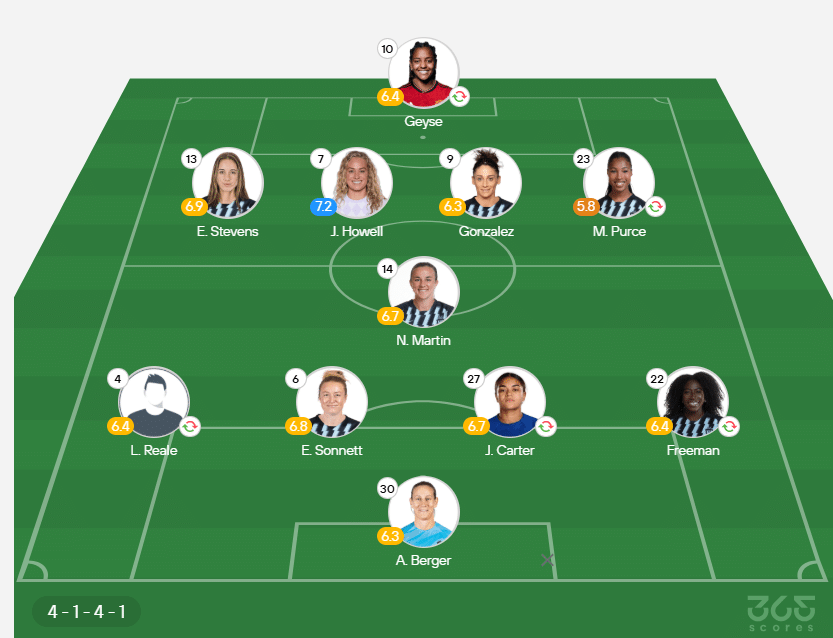 - Defensores: Reale, Sonnett, Carter, Freeman