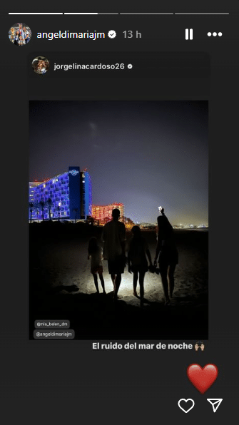 El destino elegido para descansar después de su participación en la Copa América y antes de su retorno a Benfica fue Ibiza. Sus playas paradisíacas y los imponentes atardeceres se convirtieron en los principales protagonistas de los últimos posteos, tanto de Angelito como de su esposa, Jorgelina Cardoso.