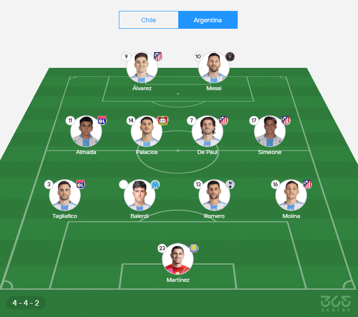 Jugadores no disponibles: Enzo Fernández, Leandro Paredes, Nicolas Otamendi, Alexis Mac Allister, Giovani Lo Celso.
