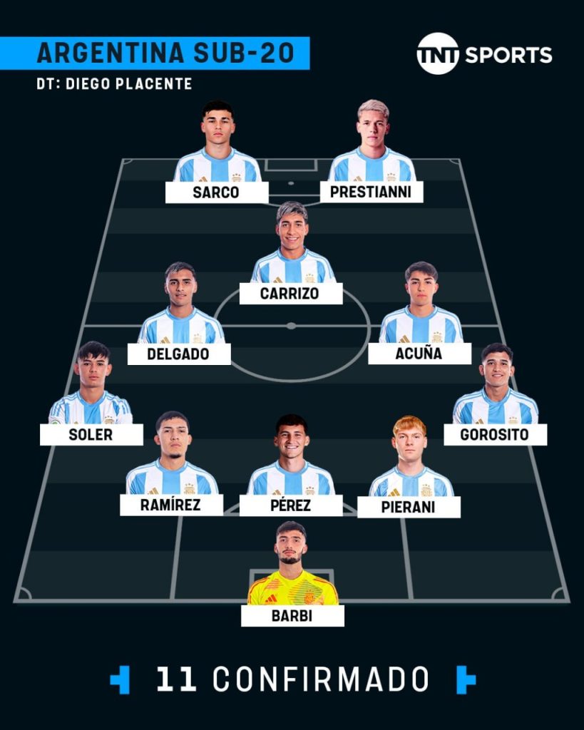 A una hora para el inicio del partido, el entrenador Diego Placente confirmó los once que enfrentarán a México en por los cuartos de final del Mundial Sub 20.