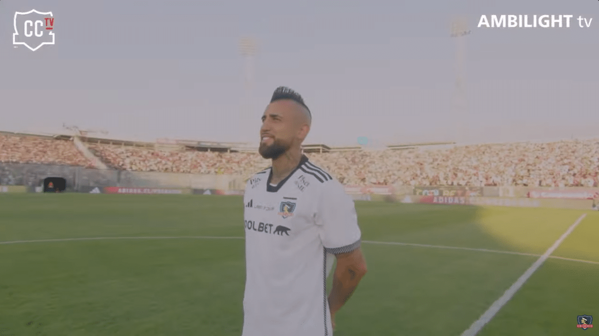 Arturo Vidal presentado ante 35 mil personas como nuevo jugador de Colo Colo. Foto: Colo Colo TV.