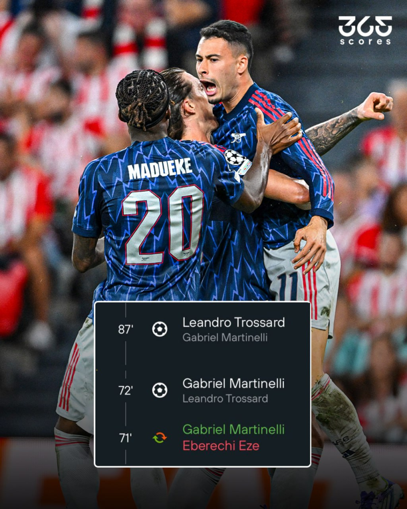 Martinelli y Trossard le dieron al Arsenal un debut victorioso en Bilbao