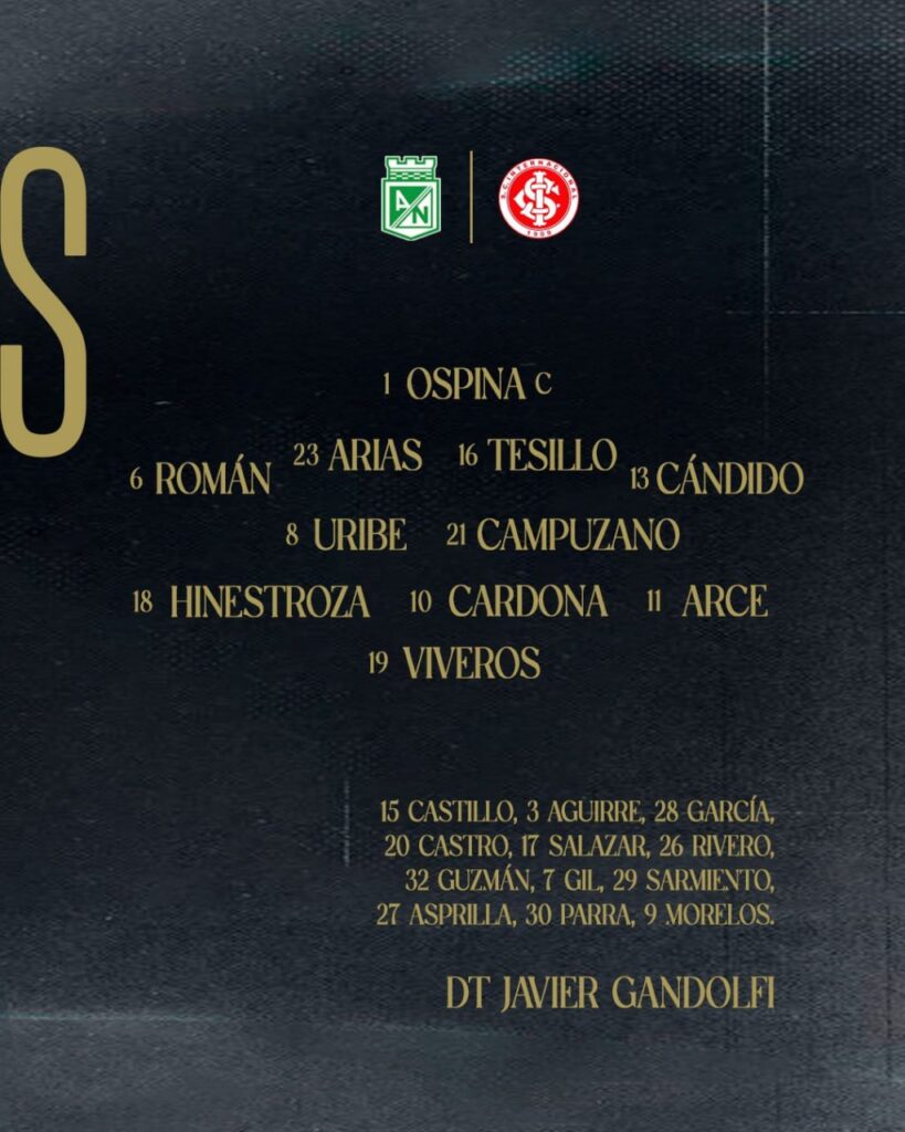 Atlético Nacional hoy se jugará un partido clave ante Inter de Porto Alegre en el Atanasio Girardot, por la cuarta jornada de la fase de grupos de la Copa Libertadores 2025. Javier Gandolfi, entrenador del Verdolaga, ya tiene todo confirmado para este duelo que puede ser bisagra en el Grupo F. ¿Quién ganará?
