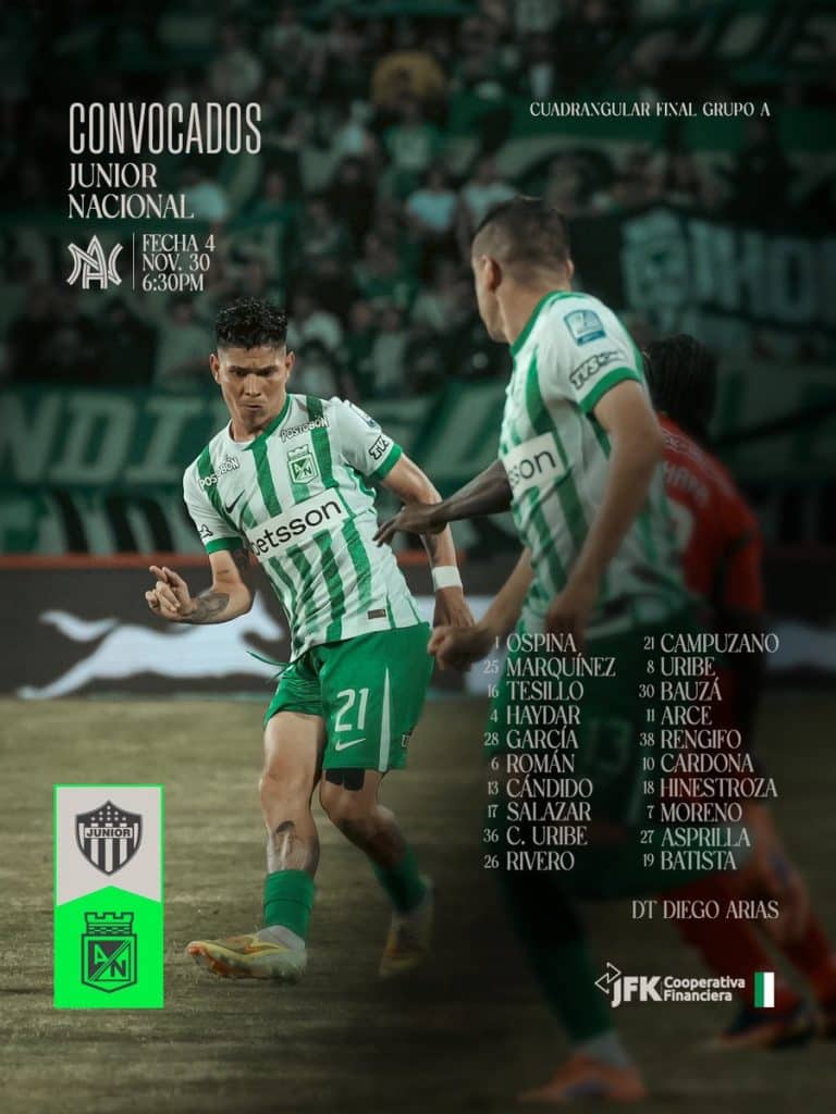 Atlético Nacional se prepara para afrontar otro duelo determinante por el liderato del Grupo A. El conjunto verdolaga viene de igualar ante Junior en Itagüí y ahora es el turno de viajar hasta Barranquilla para ir en busca de tres puntos clave que le permitan alcanzar la punta en soledad. A pocas horas para afrontar este nuevo compromiso, Diego Arias definió la convocatoria de Diego Arias y la posible nómina.