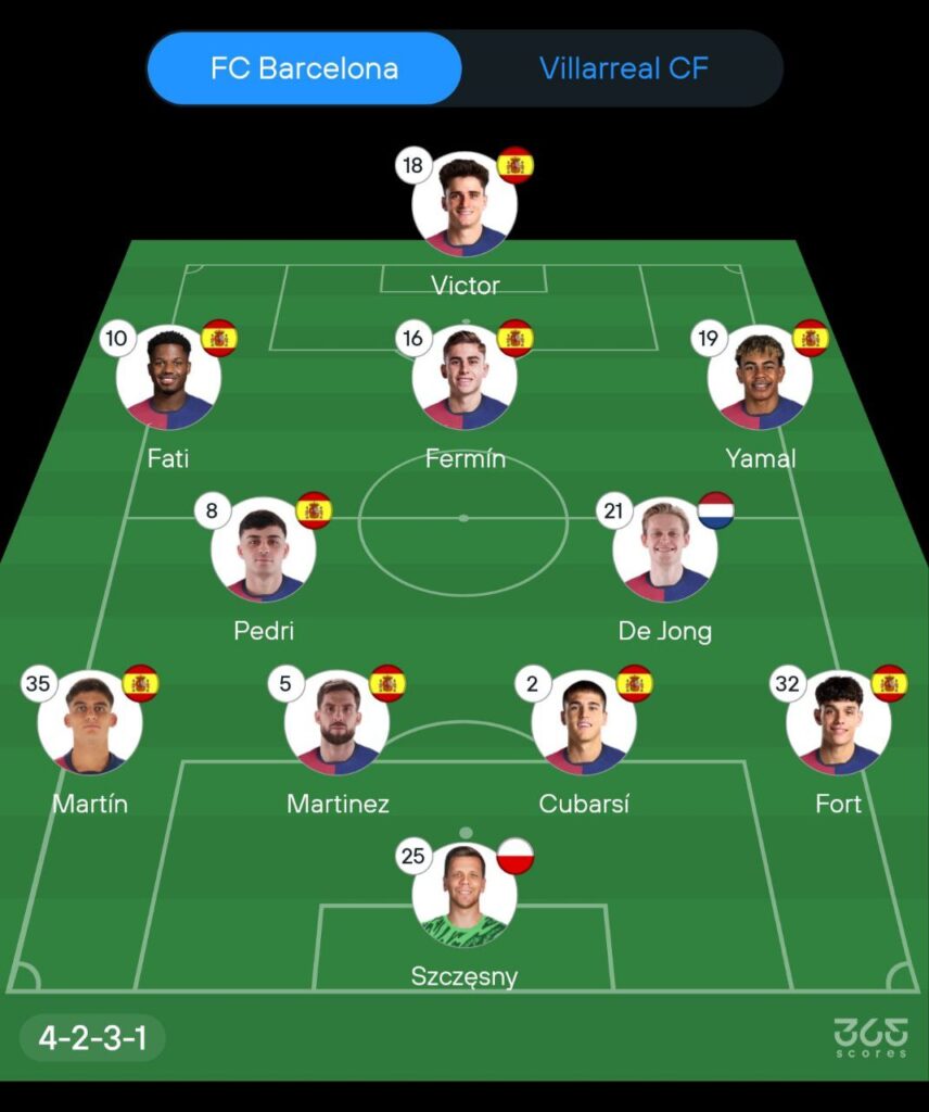 - Delanteros: Lamine Yamal, Ansu Fati, Pau Victor.