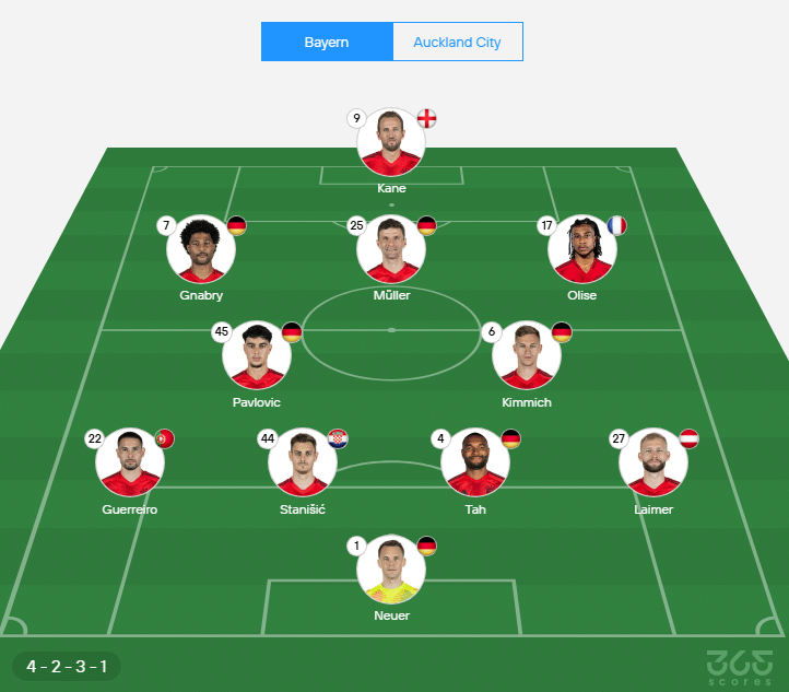 - Delanteros: Serge Gnabry, Harry Kane, Michael Olise.
