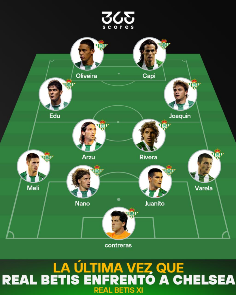 Alineaciones de la última vez que se enfrentaron Betis vs Chelsea