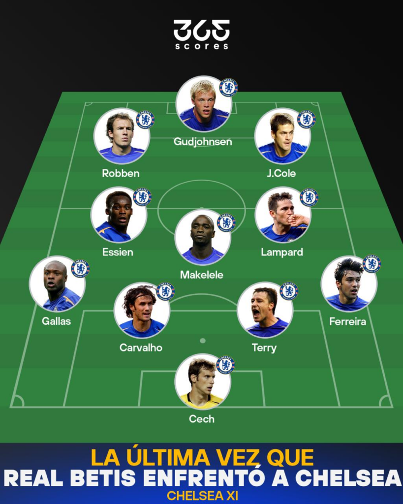 El último enfrentamiento entre ambos clubes se dio el 1 de noviembre de 2005, por la fase de grupos de la Champions League. Aquel día, Betis vs Chelsea se impuso 1-0 como local en el estadio Benito Villamarín gracias a un gol de Dani. Fue un triunfo memorable ante un equipo inglés plagado de figuras, dirigido por José Mourinho.