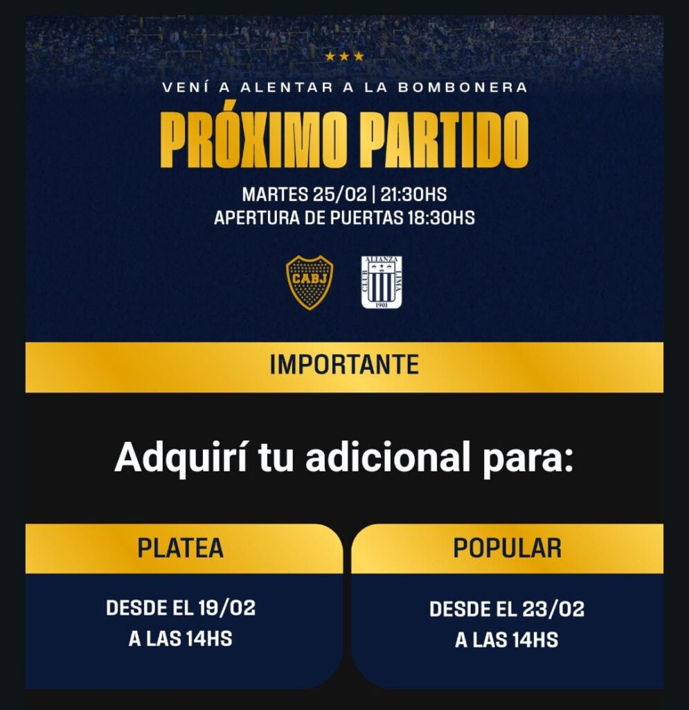 A falta del posteo oficial en las redes sociales del club, Boca informó que la venta de entradas para el encuentro de vuelta ante Alianza Lima saldrán en dos tandas: