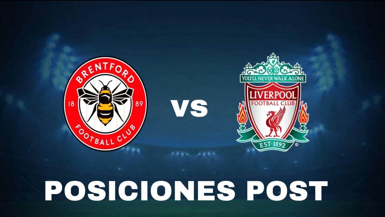 Brentford 3-2 Liverpool: posiciones post-partido en la Premier League