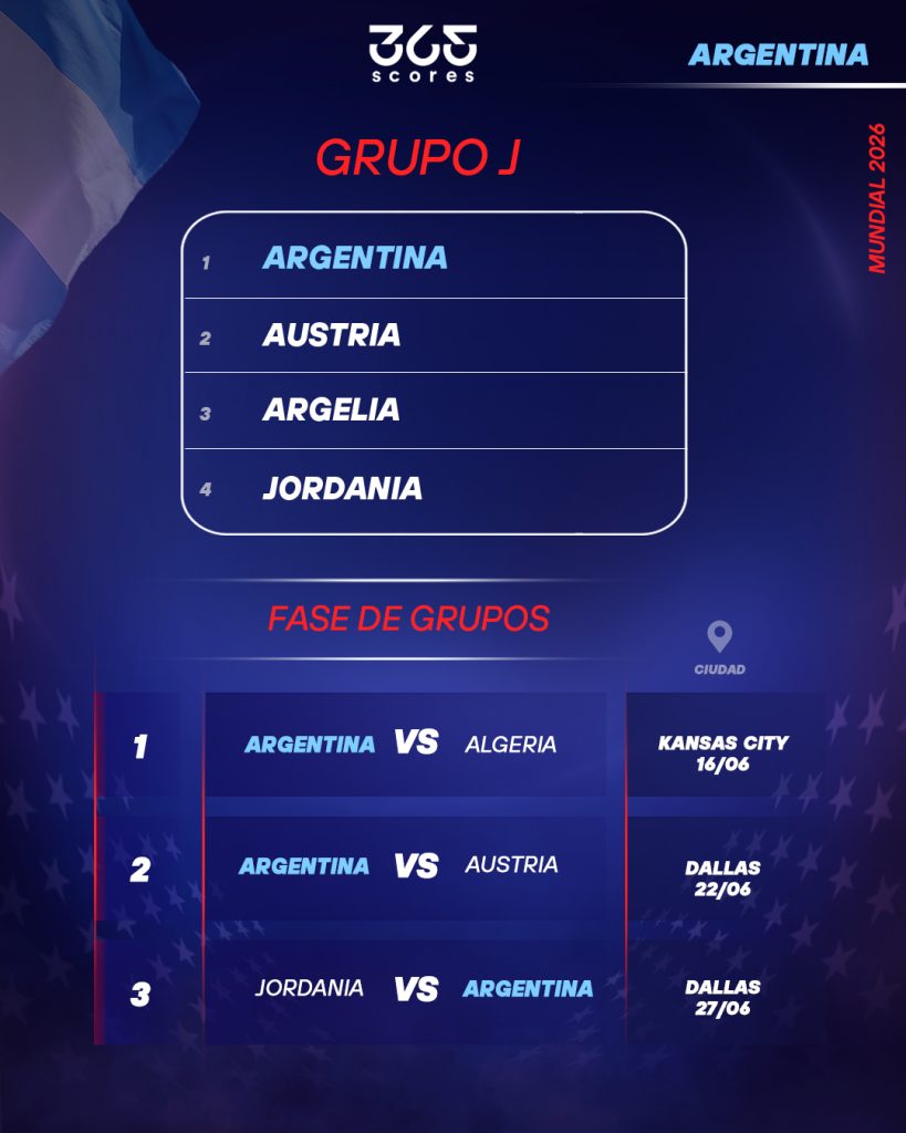 El grupo J ofrece una combinación de rivales accesibles —al menos en el papel— lo que le permite a la Scaloneta aspirar a pasar la fase de grupos con comodidad y pensar en grande: 16avos, 8vos, 4tos, semifinal… y por qué no, nuevamente la final.