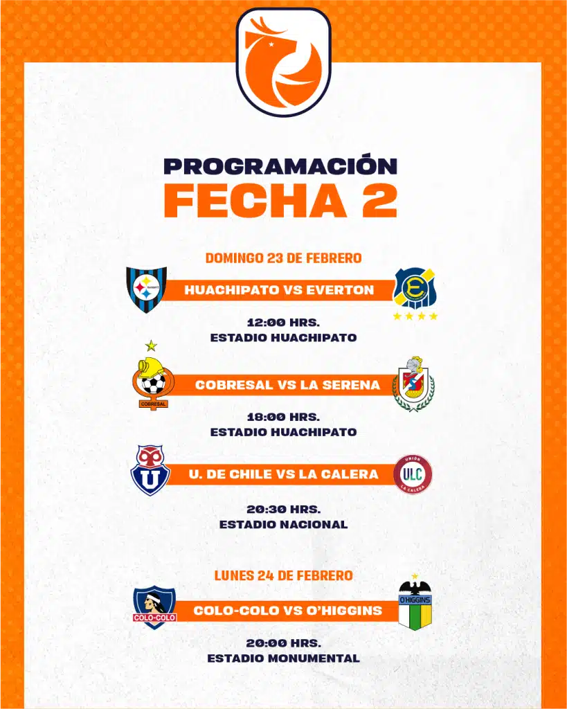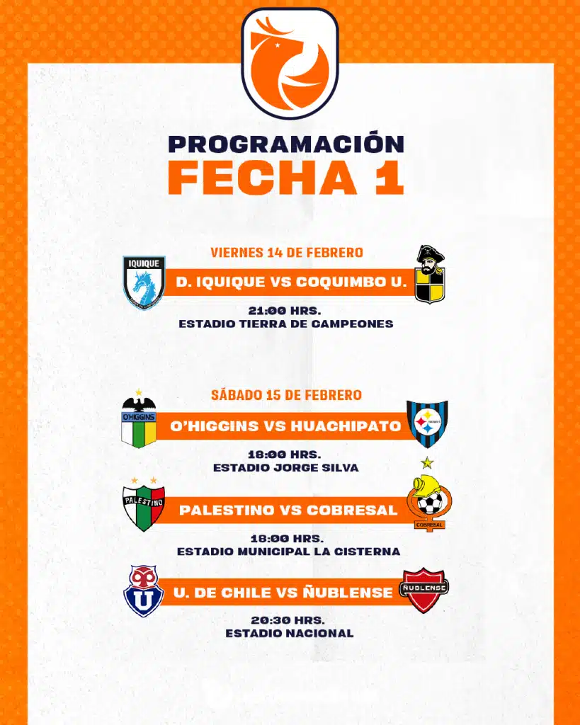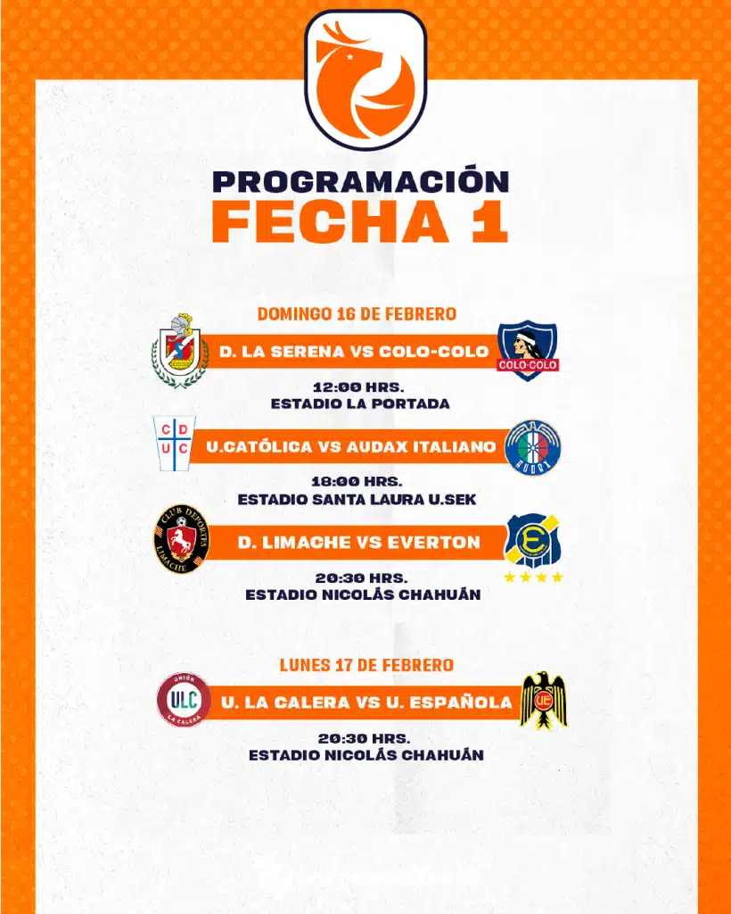 Calendario de las primeras fechas del campeonato chileno