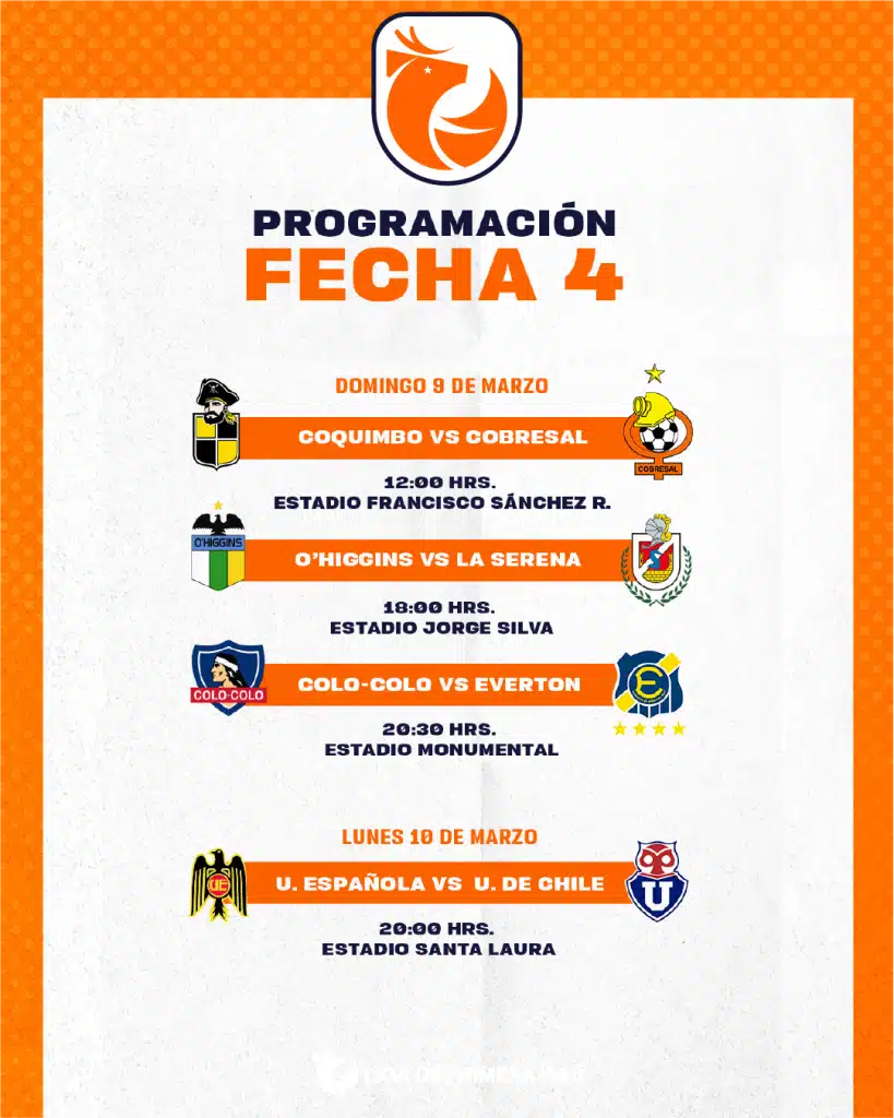 Calendario de las primeras 4 fechas del campeonato Chileno