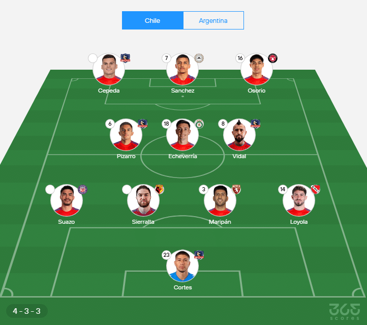 - Delanteros: Darío Osorio, Lucas Cepeda, Alexis Sanchez.