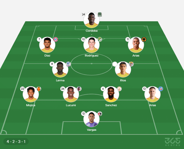 - Defensores: Arias, Sanchez, Lucumí, Mojica