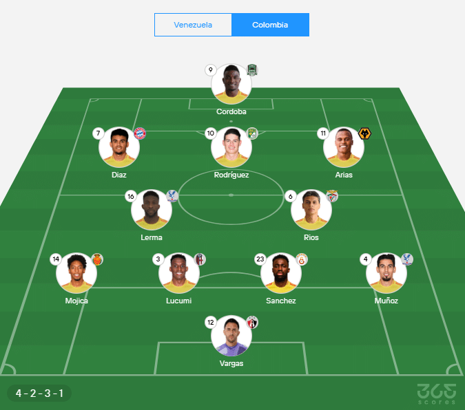 - Defensores: Muñoz, Sanchez, Lucumí, Mojica