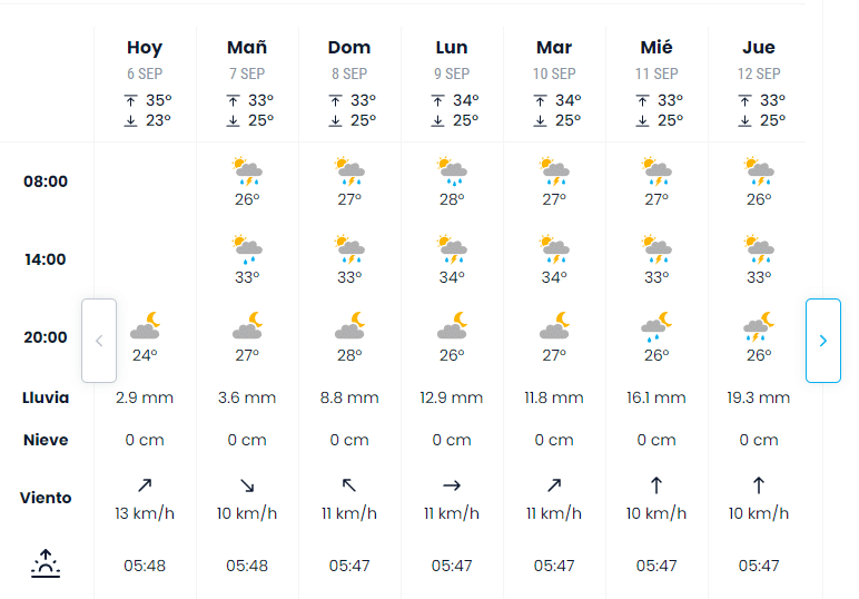 A la hora de proyectar cómo estará el clima a la hora del encuentro, el pronóstico oficial adelanta que para el inicio del juego el clima rondará los 34 grados centígrados. Además, la humedad estará cerca del 85%.