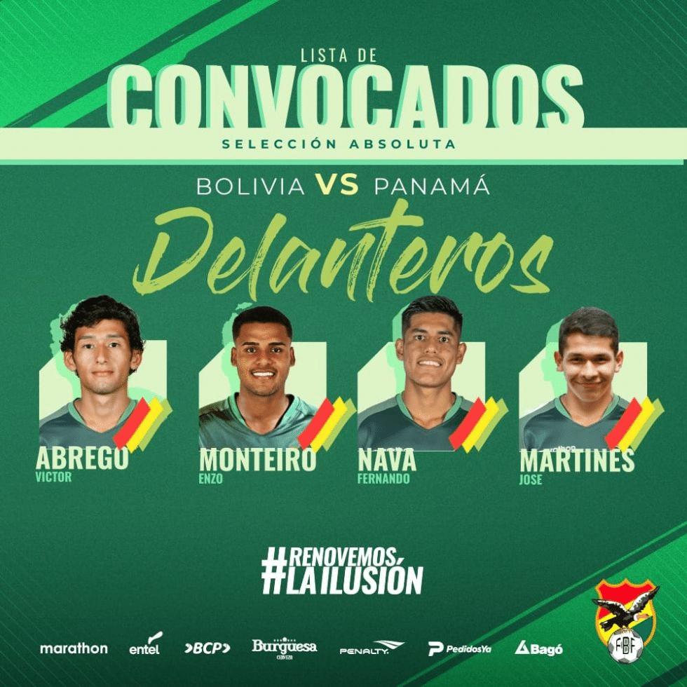 Delanteros: Víctor Ábrego (Universitario de Vinto), Enzo Monteiro (Santos, Brasil), Fernando Nava y José Martines (Always Ready).