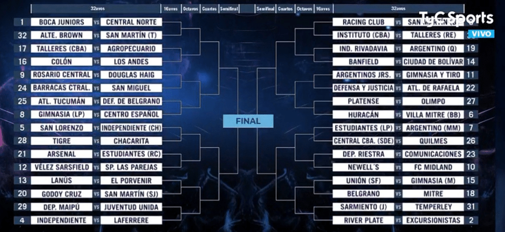 HORARIOS DEL SORTEO DE LA COPA ARGENTINA: