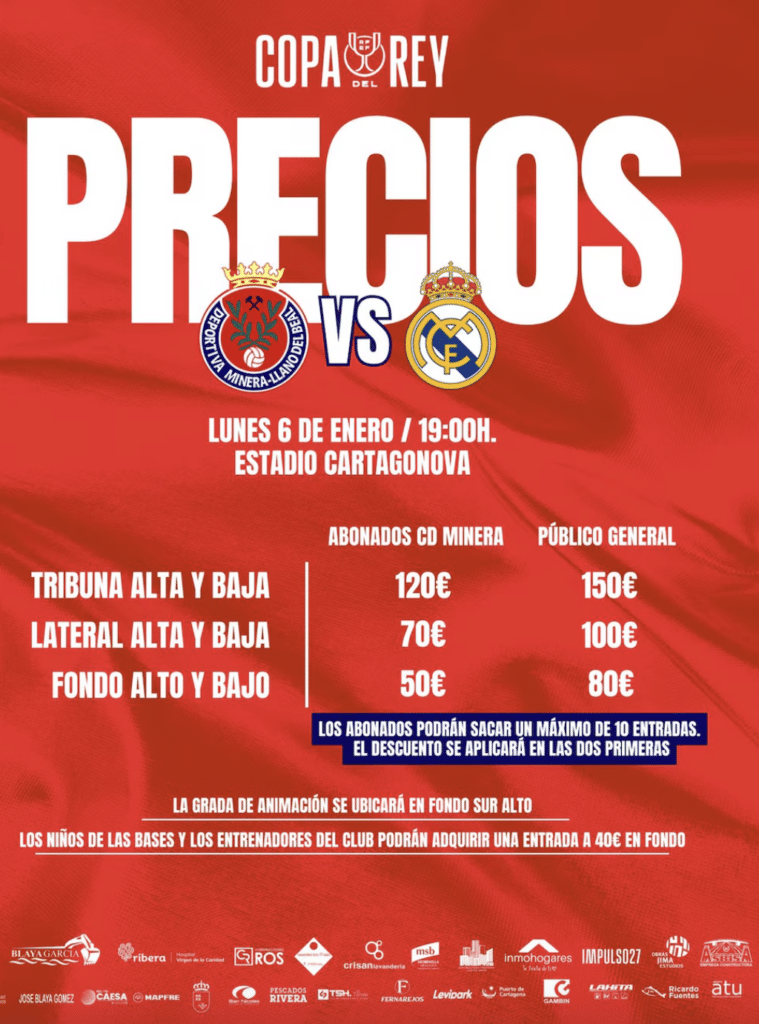 Más allá de lo deportivo, el club de Murcia sabe que debe aprovechar la llegada de Real Madrid a su humilde estadio. Por eso, ha decidido poner precios altísimos para este duelo que se jugará en el estadio Cartagonova, la casa del FC Cartagena.