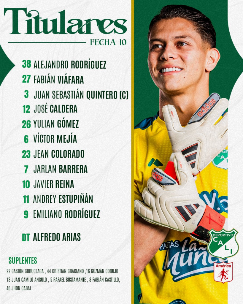 Este es el equipo de Deportivo Cali hoy para enfrentar al América de Cali. Se nos viene un partidazo y hay equipo confirmado.