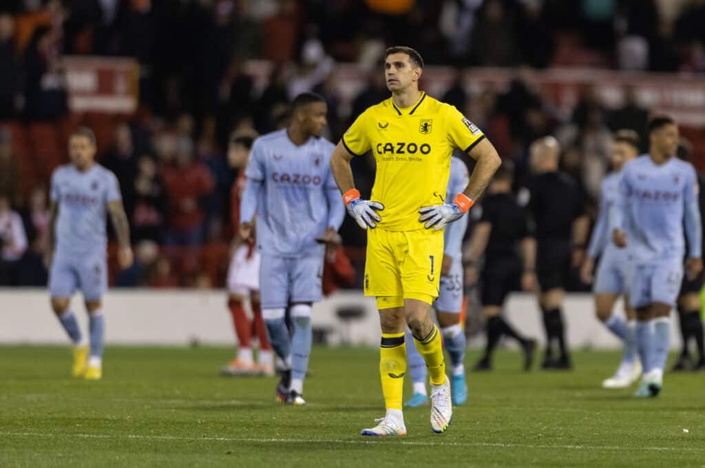 Dibu Martínez hoy: Expulsado en el Manchester United vs Aston Villa