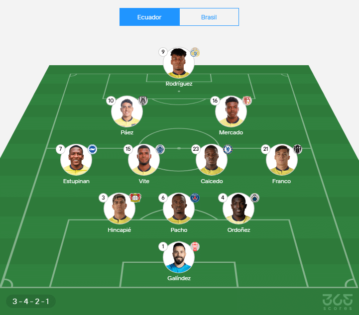 - Defensores: Joel Ordoñez, Willian Pacho, Piero Hincapié.