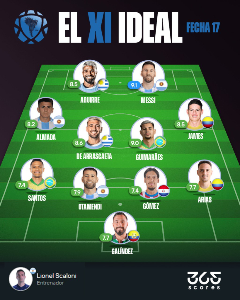 Eliminatorias Sudamericanas: futbolistas más influyentes y XI ideal de la Fecha 17