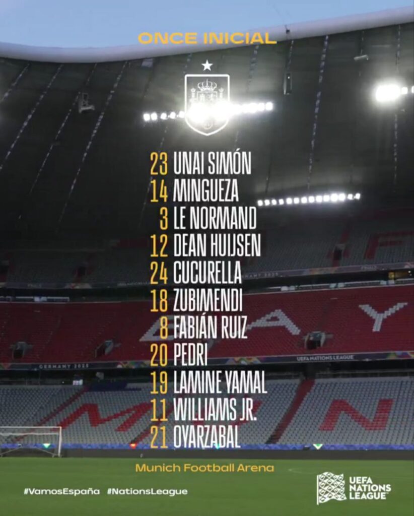 El equipo de Luis de La Fuente mantiene su base de la selección Campeona de la Eurocopa 2024. Salvo algunas bajas por lesión, “La Roja” sale con lo mejor para ir por el título de la Nations League donde también son los actuales Campeones.