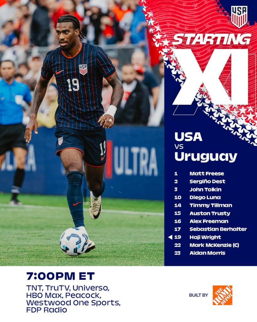 A continuación, los once de EE.UU. para enfrentar a la Selección de Uruguay en un nuevo amistoso internacional, en el marco de la fecha FIFA de noviembre 2025.