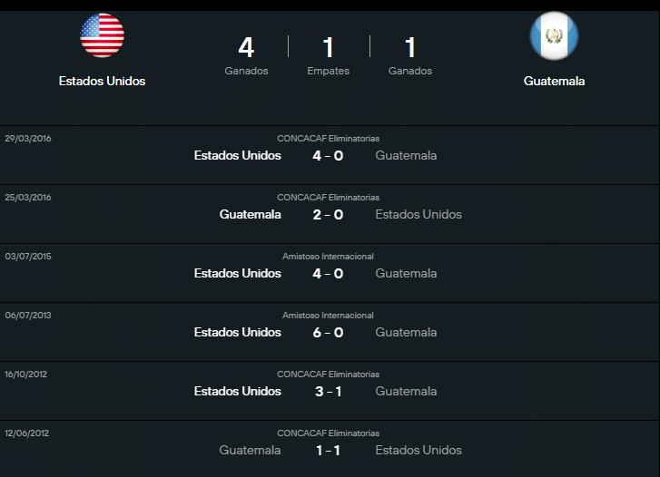 Probabilidades de una derrota de Estados Unidos vs Guatemala