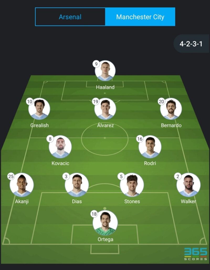 Pep Guardiola apuesta por la dupla Julián Álvarez y Erling Haaland en el ataque.