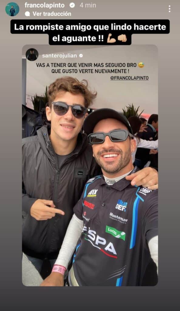 El pilarense de 21 años estuvo este domingo en el Autódromo Oscar y Juan Gálvez de la Ciudad de Buenos Aires para ver el circuito 12 del Turismo Carretera. El piloto de Fórmula 2 acompañó a su amigo Julián Santero, quien salió segundo en la carrera y ganó la etapa regular.