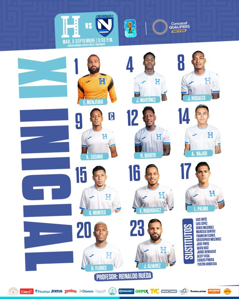 Honduras: formación confirmada vs Nicaragua por Eliminatorias